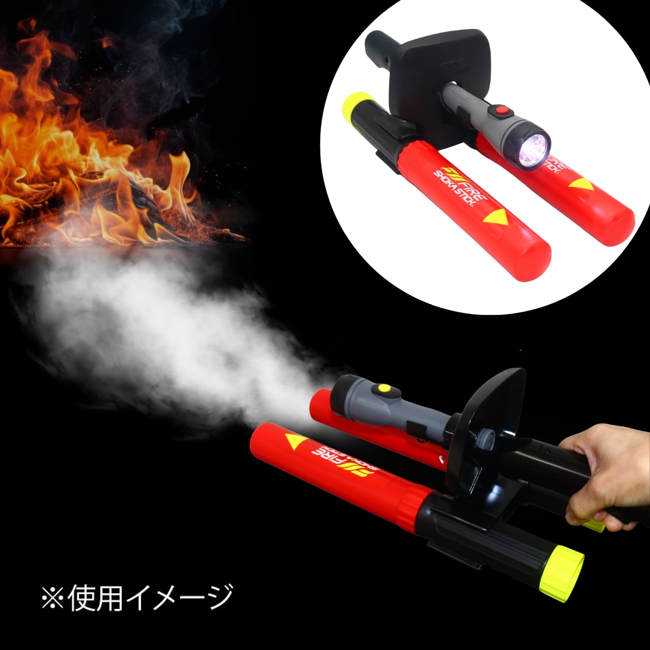 ※ファイヤーショーカスティックは、経済産業省から承認を受けて輸入販売している消火器具です。